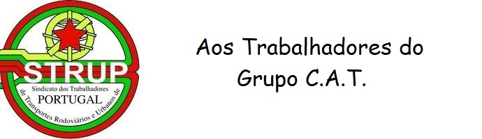 • O STRUP irá elaborar a proposta reivindicativa para o ano de 2026 Antes de formalizar a sua entrega à Empresa, esta proposta será discutida com todos os trabalhadores. Para o efeito será convocado um plenário a realizar no dia 4 de outubro pelas 10h30 nas instalações da União de Sindicatos de Setúbal, sitas na Rua Silva Porto, nº 6A. Sendo os assuntos a abordar do interesse dos trabalhadores da C.A.T., o STRUP apela à participação de todos.